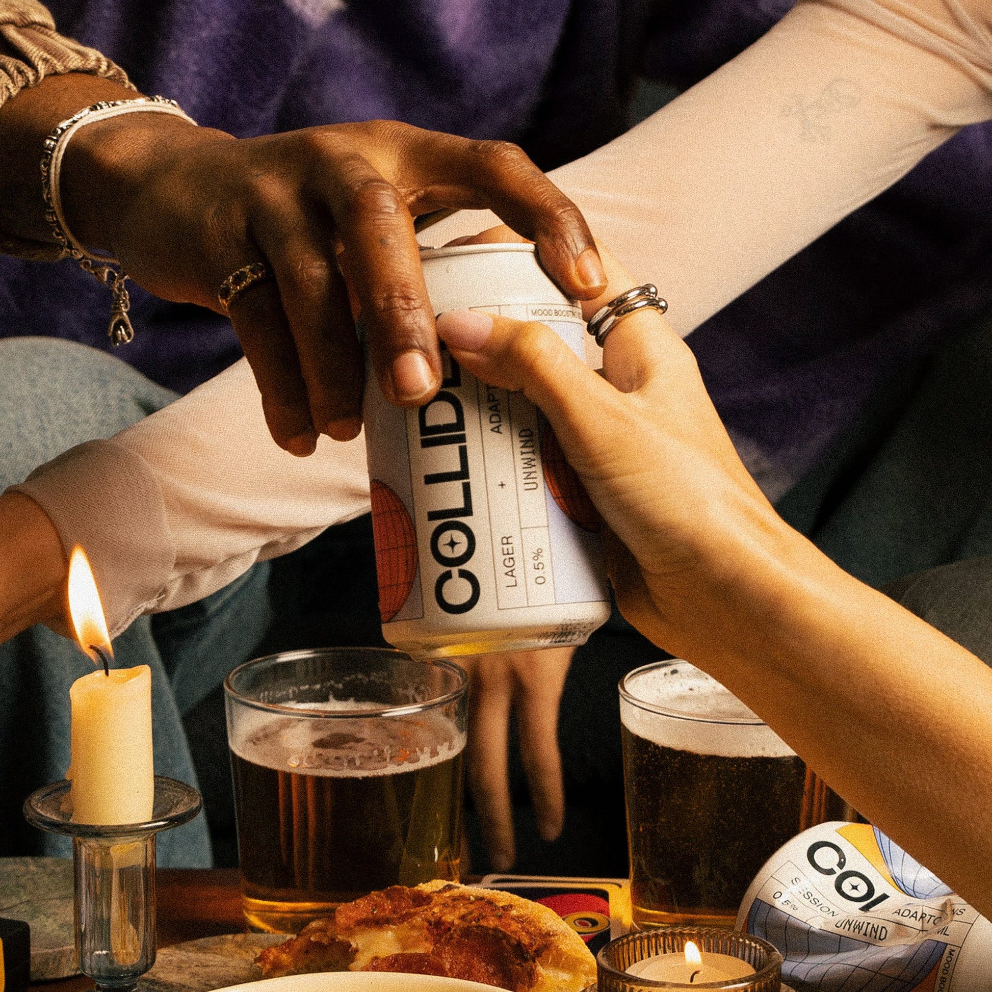 A classic lager, just without the alcohol. Brewed with British malted barley, wheat, hops, yeast, and water, then infused with our signature Unwind Blend™—a mix of Lion's Mane mushroom, Ashwagandha, and L-Theanine.