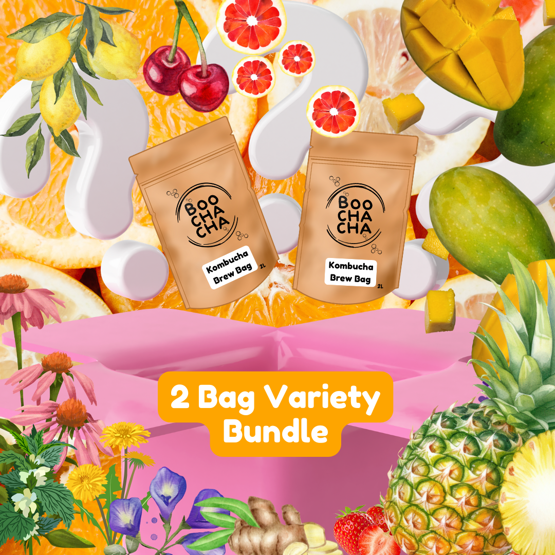 The ultimate Kombucha Starter Kit Bundle, complete with everything needed to make your own natural, delicious, fresh Kombucha at home, alongside some fun extras to turn our famous Complete Kombucha Starter Kit into a luxurious gift set!