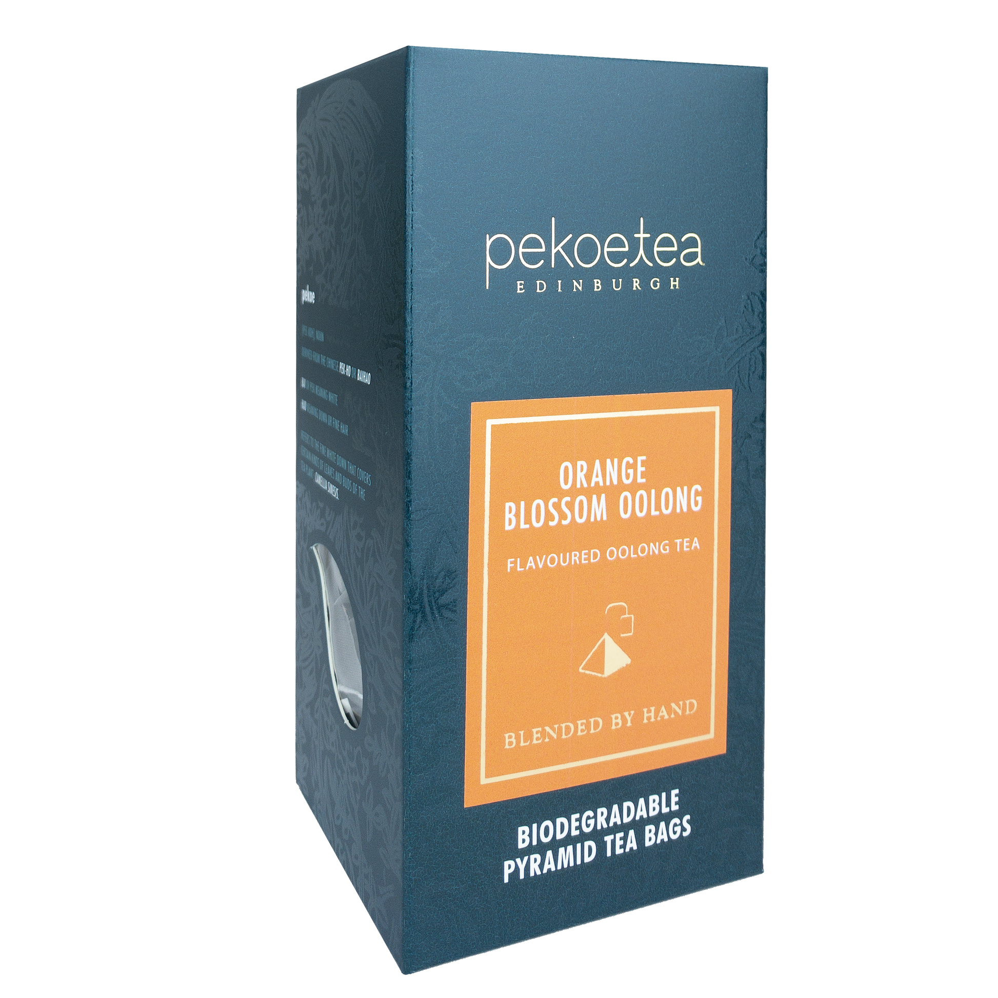Our Orange Blossom Oolong is a rich dark oolong perfect for warming up in cold weather. The aroma will leave others wondering what's in your cup with its delicate orange and caramel flavours. It goes well with morning toast and marmalade. Orange Blossom Oolong also makes a refreshing iced tea or cold infusion. We hand-craft this tea in our Edinburgh factory using the finest Taiwanese oolong teas, orange blossoms and natural flavourings.