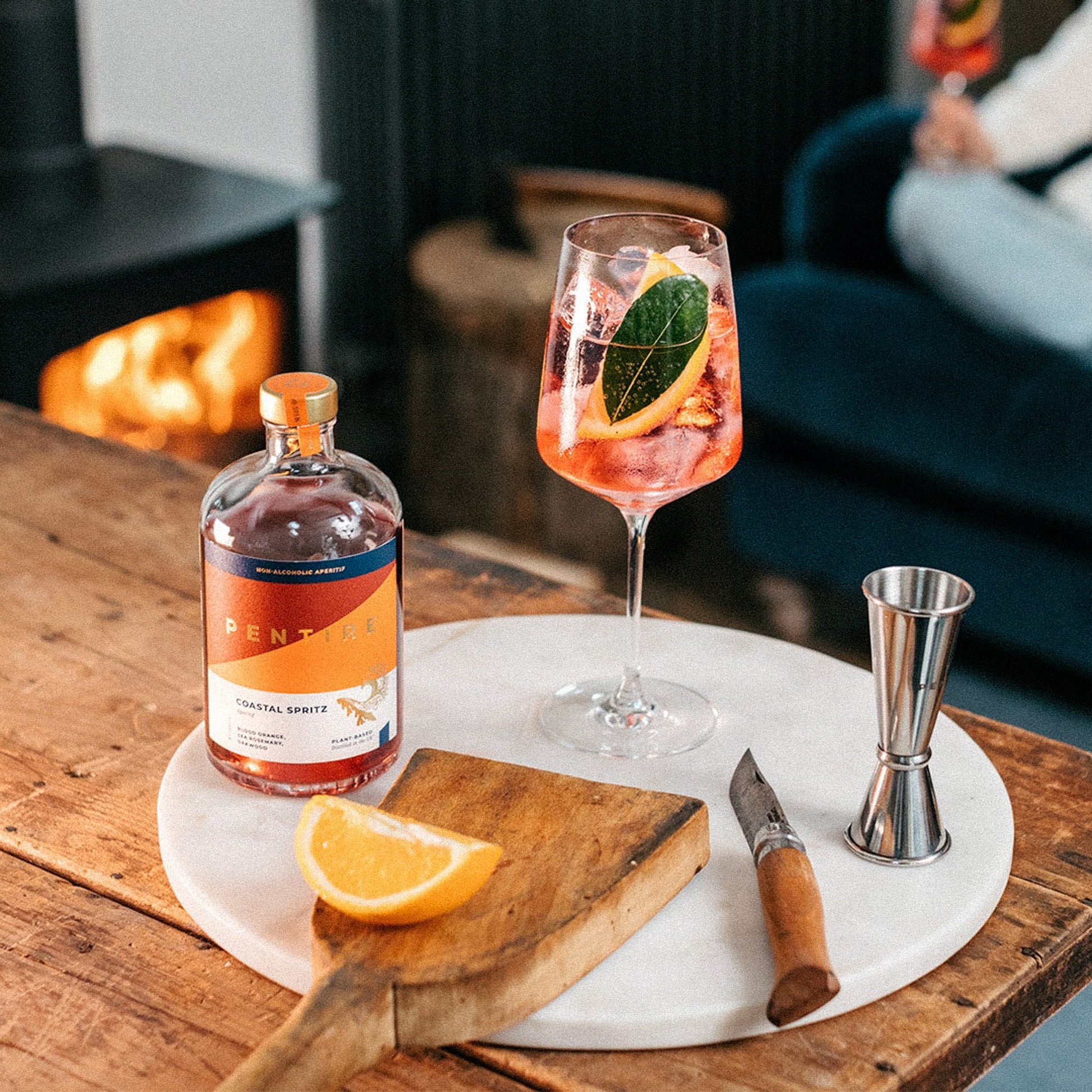Pentire Coastal Spritz is an unmixed version of the popular canned drink, offering the same refreshing coastal botanicals with the added complexity of blood orange, sea rosemary, and oakwood - just add tonic or soda. This blend creates a perfectly balanced spritz with natural bitter flavours and bright, coastal notes. To serve, simply pour 50ml of Pentire Coastal Spritz into a spritz or wine glass filled with ice, top up with 150ml of light tonic or soda.