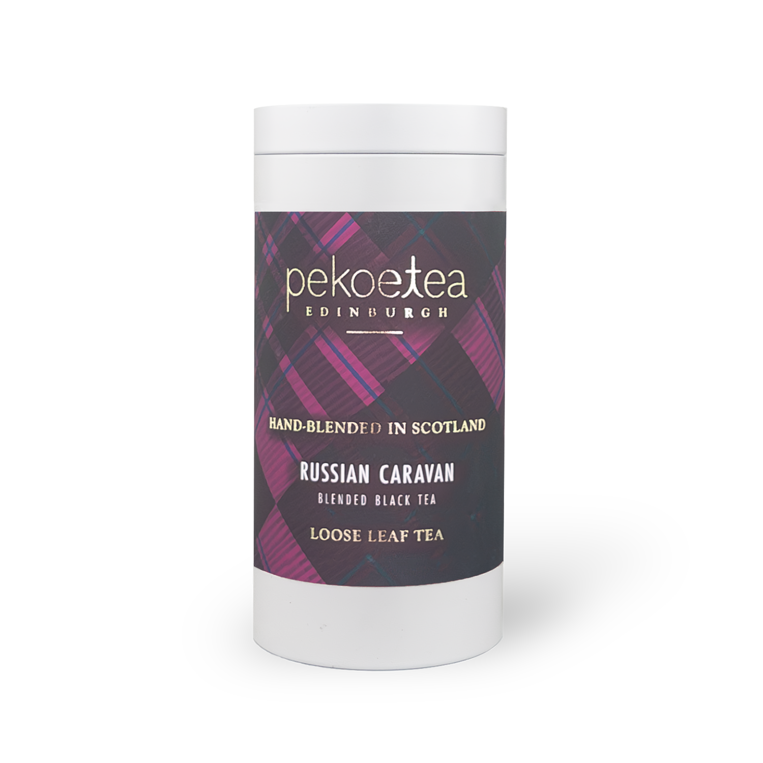 Russian Caravan gets its name from the camel caravans that transported teas from origin to Russia and Europe. Traditionally, Russian Caravan has a slightly smokey aroma, said to be from the fires lit next to the tea transports to keep warm at night. Our Russian Caravan is hand-blended in Edinburgh using the finest Lapsang Souchong, Assam and China Black Teas balancing a slight smokiness, sweet and malty flavours. We hand-pack all our teas in Edinburgh into infinitely recyclable aluminium caddies with a plastic free inner, or resealable stand-up pouches.