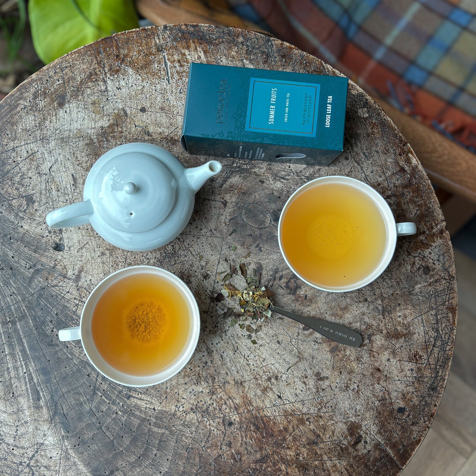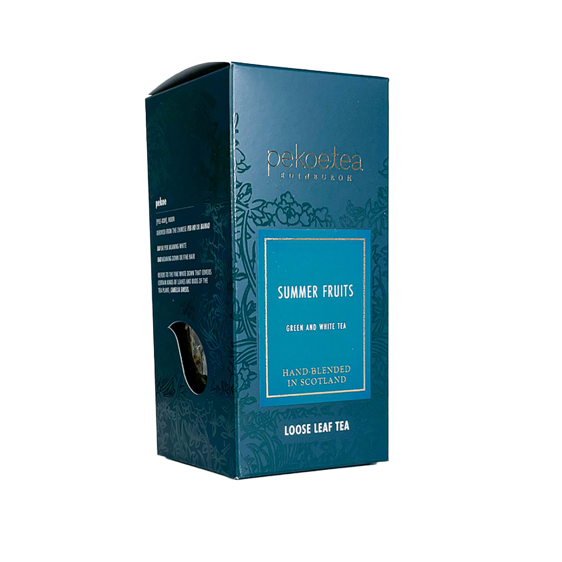 Inspired by eating fresh cut strawberries at a summer picnic, Summer Fruits is a lovely blend of sweet white tea and refreshing green tea with strawberry, kiwi, and coconut. Perfect for when you need a touch of sunshine to brighten your day. This is a re-blend of what was previously called Scottish Summer Fruits. We've changed the base tea to a mix of green and white tea to make the blend slightly sweeter and less sour.